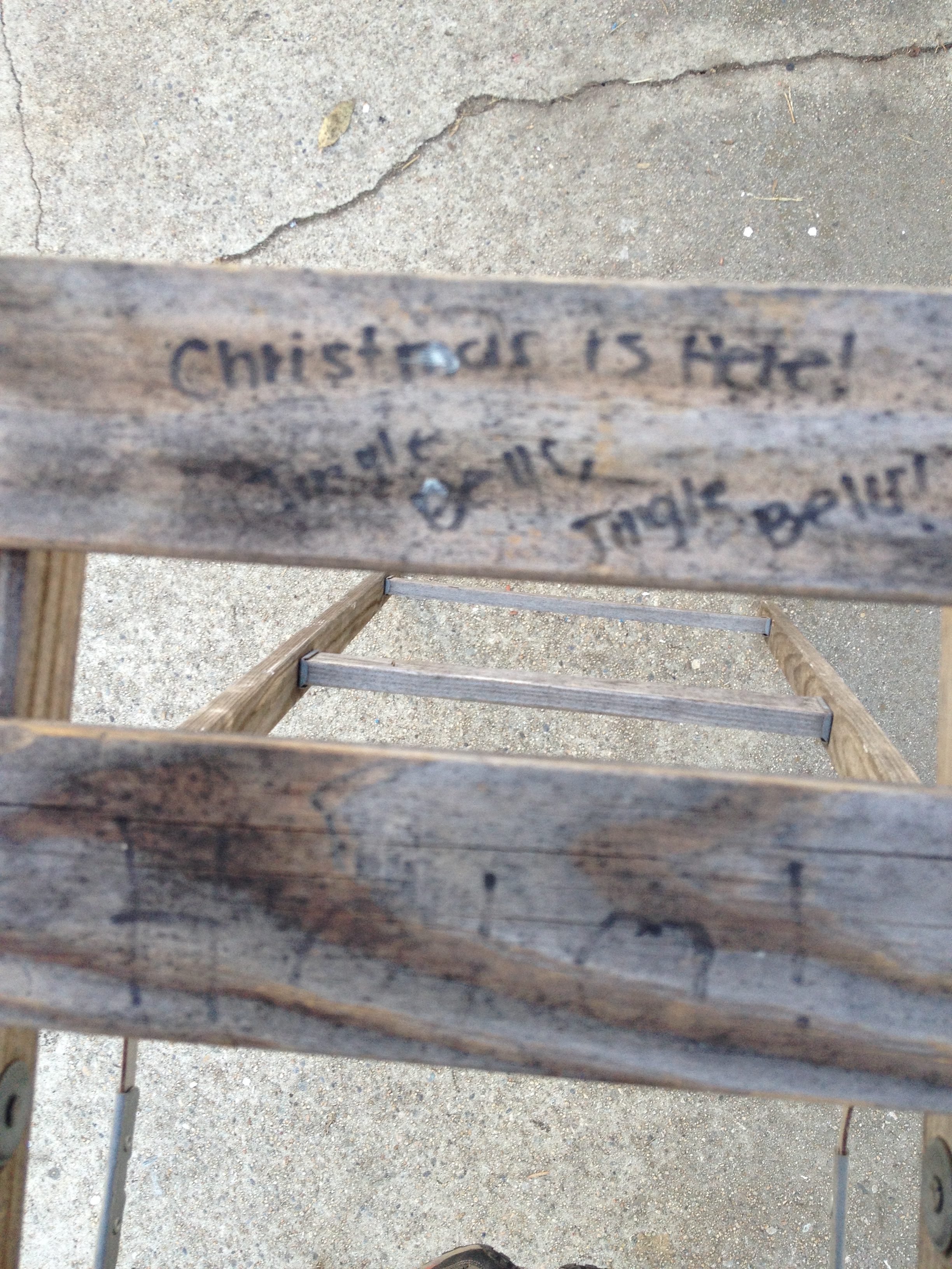 Twenty years is a long time to have a ladder. It’s not that I haven’t thought about getting a new ladder once in a while. It’s just that 1) I’m cheap, 2) I only need a ladder around the holiday season (related to the “I’m cheap” thing), and 3) this ladder has history.