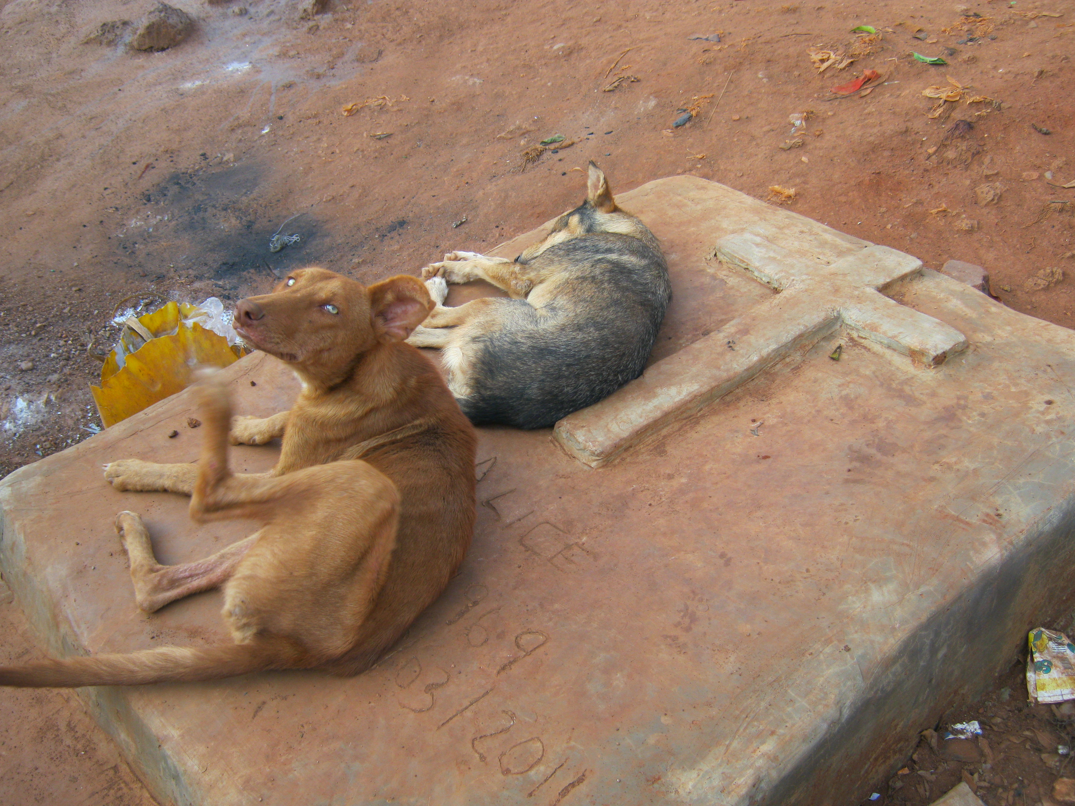 Dogs relaxing on someone’s grave, Acholi Quarter. Still not the Worst Place…